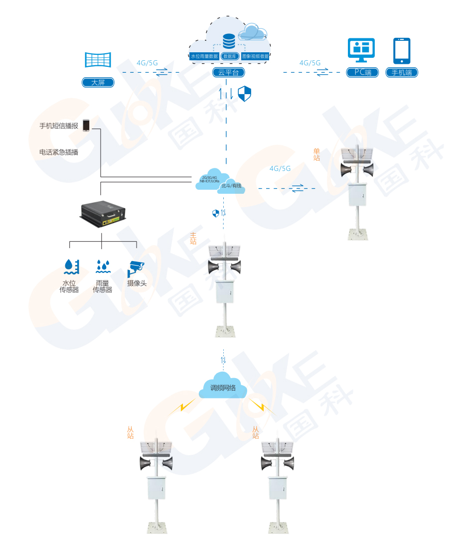 成都国科自动化,多年来深耕水利水电行业,依托现代化物联网技术和传感技术,根据多年从业经验,充分整合软、硬件设备资源,自主研发了一套可对河流水位、降雨量、水情动态等关键数据进行实时采集和传输的防汛泄洪广播预警系统。