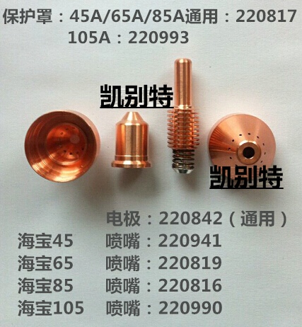 常州凯别特焊割为您提供高品质的国产海宝易损件,本产品采用铬锆铜美国原装进口铪丝为材料,使产品经久耐用。耐高温,耐电弧。主要产品有凯博100A-200A 海宝30,45,1250,1650,MAX200,HPR130,HSD130,HPR260 新款海宝1650 海宝85 65 45等,欢迎来电洽谈。13961235552