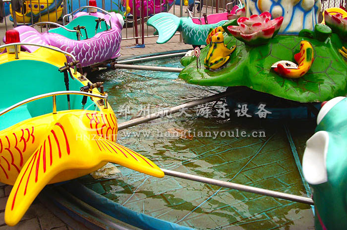鲤鱼跳龙门是一款以中国传统文化故事为背景制作而成的一款转椅类游乐设备,整个设备中处处洋溢着欢快的气氛,生动形象的鲤鱼座椅以及鲤鱼跳龙门时掀起的涟漪,此款游乐设备经久不衰,可玩性高,一般设计为八臂,功率6.5kw,占地面积50平米,乘员16人。