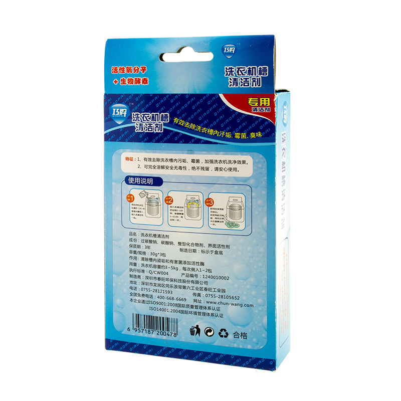 用途:清除洗衣机槽内顽垢和有害菌,添加活性酶。