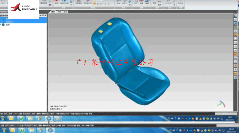 经过大约10分钟的时间,我们扫描完成,得到汽车座椅三维扫描抄数的完整三维图纸;