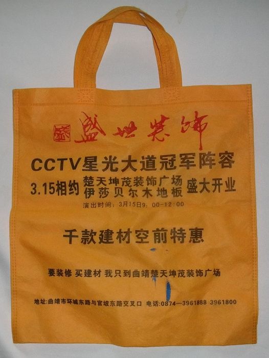 一个漂亮的无纺布购物袋,就不单单只是一个商品的包装袋了。其精美的外观更令人爱不释手,可以化身为时尚的简便的单肩包,成为街头一道靓丽的风景。加上其固,防水,不粘手的特性必将成为顾客出门的第一选择,在这样的一个无纺布购物袋上,能够印上贵公司的标志或者广告,其带来的广告效应就不言而喻了,真正的把小投入变成大回报了。