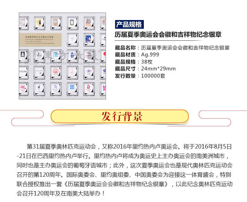 历届夏季奥运会会徽和吉祥物纪念银章限量发行100000套