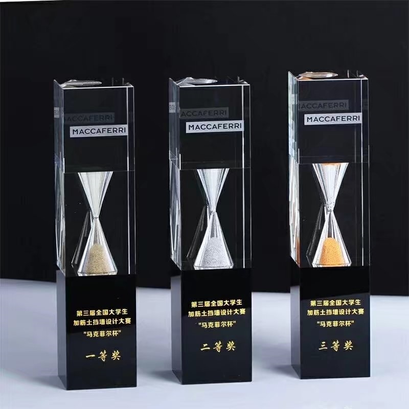 沙漏水晶奖杯 热款水晶奖杯定做,经典黑色水晶奖杯