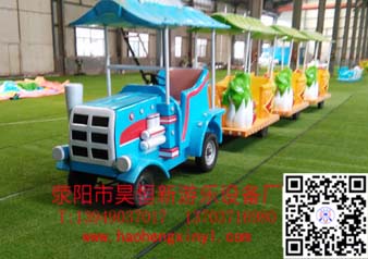 海洋无轨小火车游乐设备又叫儿童小火车,是模仿正规火车而制作的,以火车头在前、后面跟着数节类似儿童游乐设备摇摆机款式的卡通座位供儿童玩乐的机械游乐设施玩具。轨道由正规钢轨组成,车型可按需求随意更换,由配备的电机箱输入电流到轨道供火车开动。