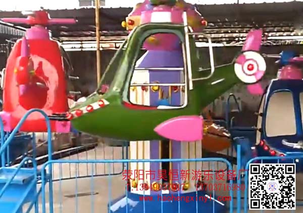 直升飞机儿童游乐设备是一种绕中心轴旋转升降的自控飞机类游乐设施,直升飞机儿童游乐设施是一种适合2--8岁儿童和8人乘座的室内游艺机,本游乐设施是由一台单相电动机驱动,儿童乘座在玻璃钢直升飞机模型上完成旋转,升降运动。直升飞机儿童游乐设备具有丰富耀眼的灯光,机械部份钢材加厚加粗,电机和减速机也同样采用比同行高一级的搭配,确保机械可以满足同时承载4个大人和4小孩;电器部份采用了变频起动和停止,确保游客在机械上每时每刻都舒适。 近年来各类游乐设施层出不穷,各类新型游乐设备在全国市场上发展迅速,昊恒新游乐设备厂游乐设备更是不断创新,不断突破.