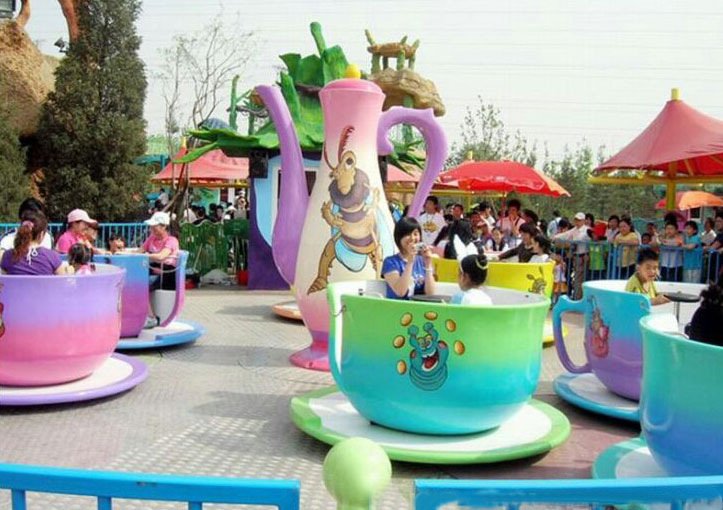 咖啡杯造型优美,中间逼真的咖啡壶,别样的色泽,是人们感受到神秘的南国风情。在乘坐物的公转和自转的同时,游客可自行调整咖啡杯转动的速度,360度随意旋转,游客的愉悦感油然而生,使人们更能有亲身体会,刺激感更上一层来喝杯下午茶。