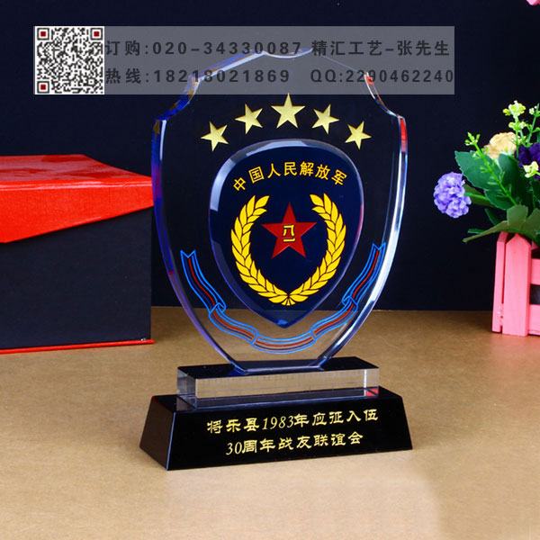 兰州西安老兵退役水晶纪念品,转业留念礼品制作
