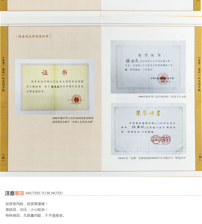 《富贵盛世》双龙抱月瓶收藏馈赠