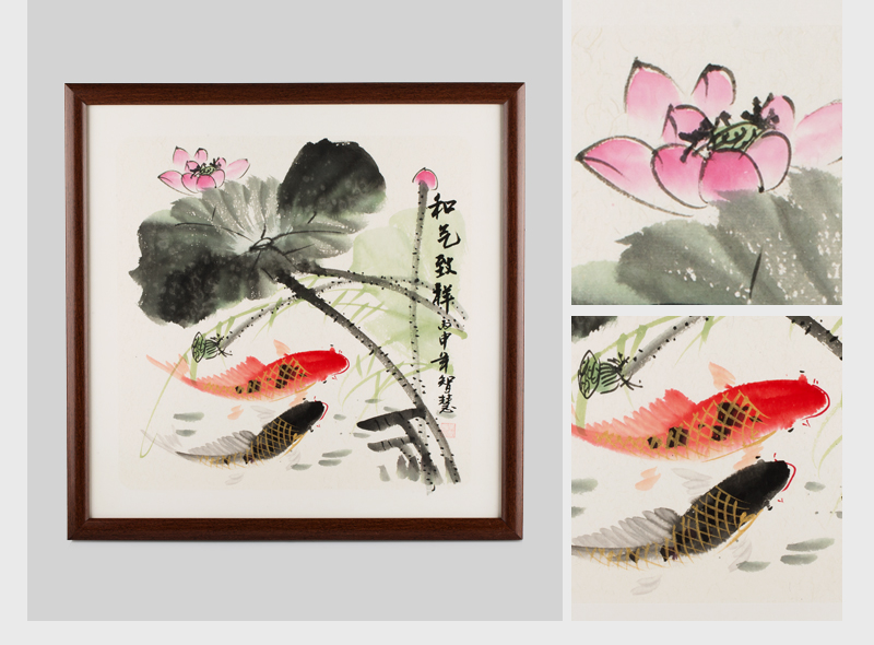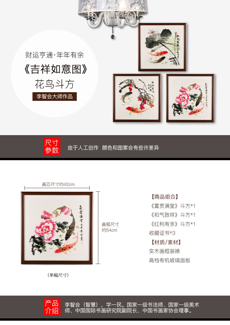 《吉祥如意图》花鸟斗方三幅实木斗方画框