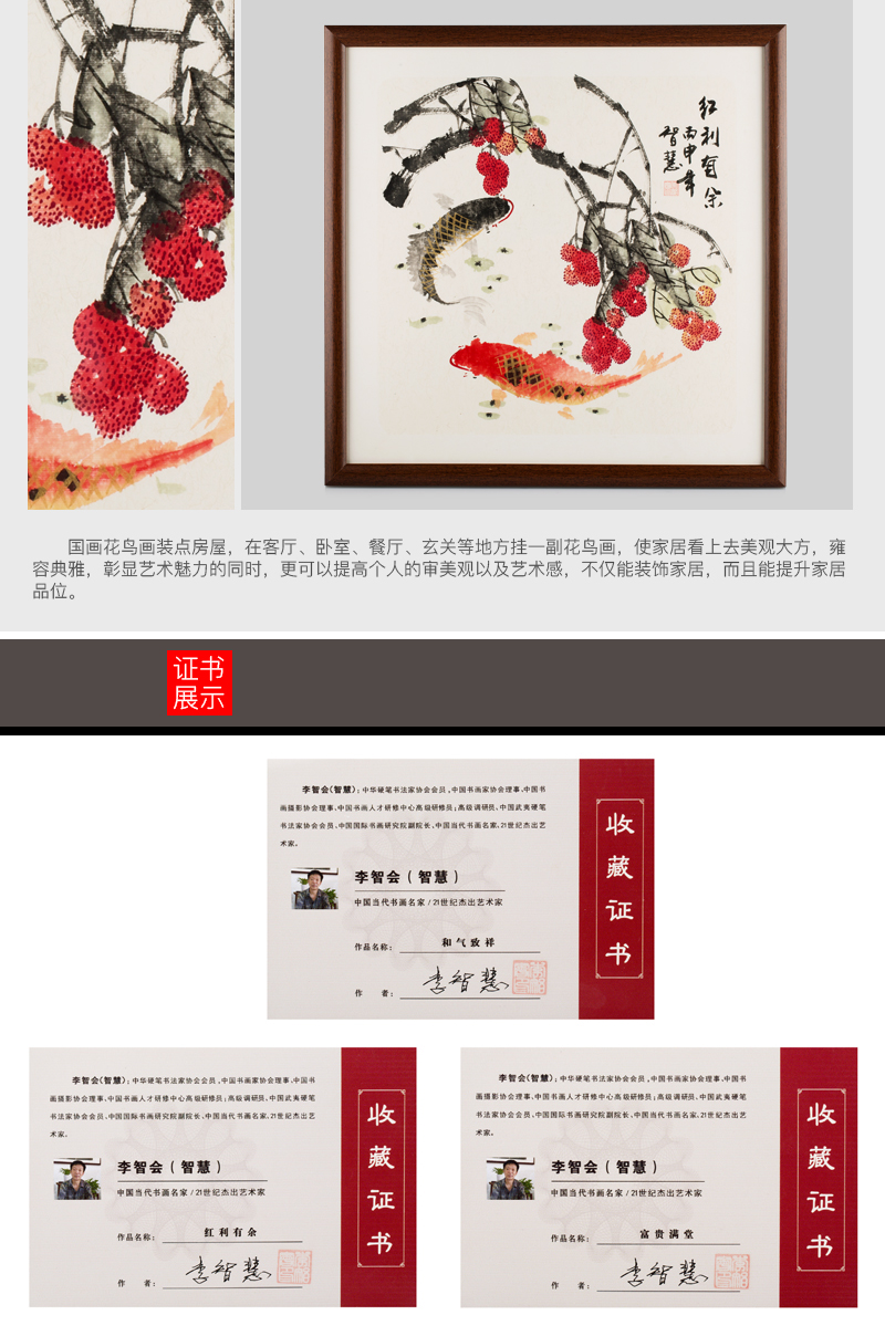 《吉祥如意图》花鸟斗方李智慧(智会)亲绘