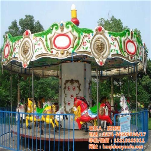 大型旋转木马在各大游乐场、公园随处可见,只要有合适的场地,经营大型旋转木马是一本万利,大型豪华转马分别有:12座 16座 24座 36座,可分为上传动豪华转马和仿传动豪华转马,售价为四万到十来万不等,同时可容纳8人-36人,一人可收费10元,场地如果在豪华的市区一人可收费20元,时间可自由调整1-5分钟不限。一天净收入2000元,节假期翻倍,不用一个月本钱就收回来了。首先转马是一种非刺激性游乐项目,它主要依赖漂亮的外观造型,绚丽多彩的灯光和美妙的音乐吸引人,所以说转马的整体造型是非常非常重要的。只要产品能在时间能够吸引顾客,给顾客一个好印象,他就可能成为你的常客,而且转马的造型非常重要,一定要顾客坐了次还要有第二次、第三次,这样才能稳定客源,这就需要转马造型多样。