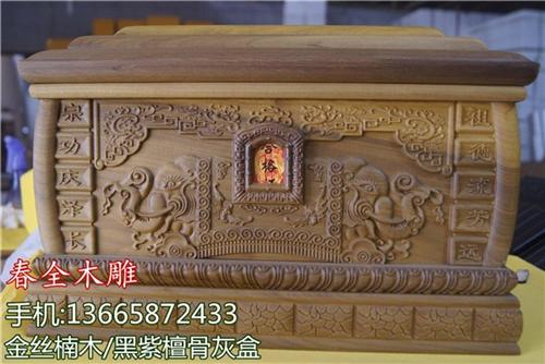 东阳市春全木雕工艺品厂是专业的骨灰盒生产厂家,产品包括金丝楠木骨灰盒、黑紫檀骨灰盒、红木骨灰盒、寿盒等。