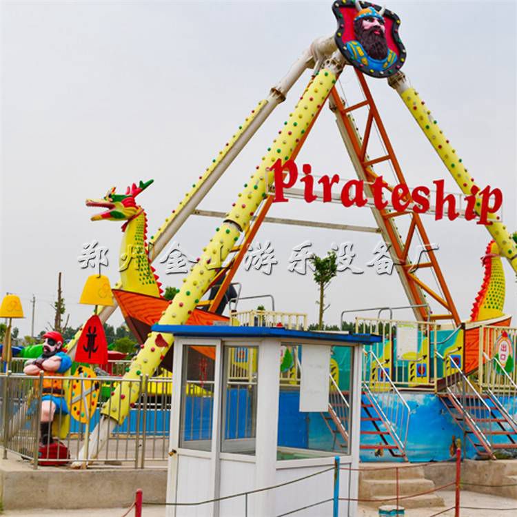 海盗船是一种全新设计的自控类游艺机,绕垂直轴旋转的游乐项目,该设备取材于加勒比海盗主题,适用于各种公园、室内外游乐场等娱乐场所使用。 是一种全新设计的自控类游艺机,是一种绕垂直轴旋转的游乐项目,该设备取材于加勒比海盗主题,设计新颖、结构独特、造型美观,深受游客的喜欢,特别是孩子的喜爱。适用于各种公园、室内外游乐场等娱乐场所使用。