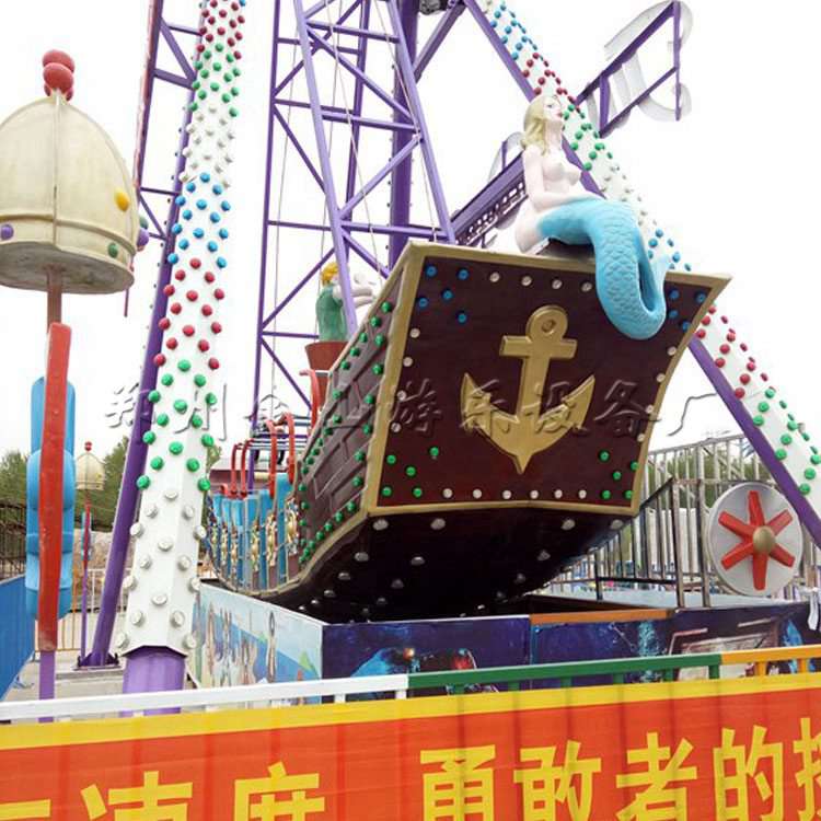 海盗船是一种全新设计的自控类游艺机,绕垂直轴旋转的游乐项目,该设备取材于加勒比海盗主题,适用于各种公园、室内外游乐场等娱乐场所使用。 是一种全新设计的自控类游艺机,是一种绕垂直轴旋转的游乐项目,该设备取材于加勒比海盗主题,设计新颖、结构独特、造型美观,深受游客的喜欢,特别是孩子的喜爱。适用于各种公园、室内外游乐场等娱乐场所使用。