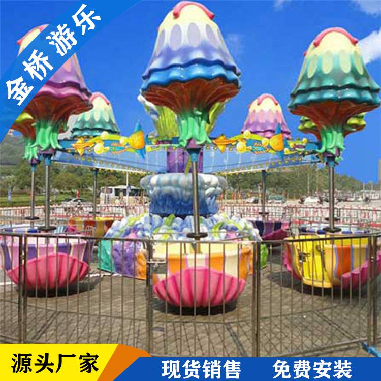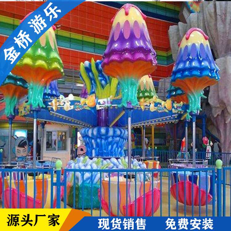 逍遥水母是一款新型的、造型美观、娱乐性强的小型游乐设备,每个座舱可以自由的旋转,乘客座在上面犹如身临大海般刺激么,趣味无穷。逍遥水母分为六臂,八臂,十臂。规格不同,直径,高度,都不相同。随着音乐上下起伏,十分欢乐。逍遥水母的座舱游客可以自由控制,好看有好玩。同时我们的逍遥水母还配置有彩灯,是设备在夜晚更加华丽璀璨,十分具有刺激性,是一种性价比较高的小型游乐设备。