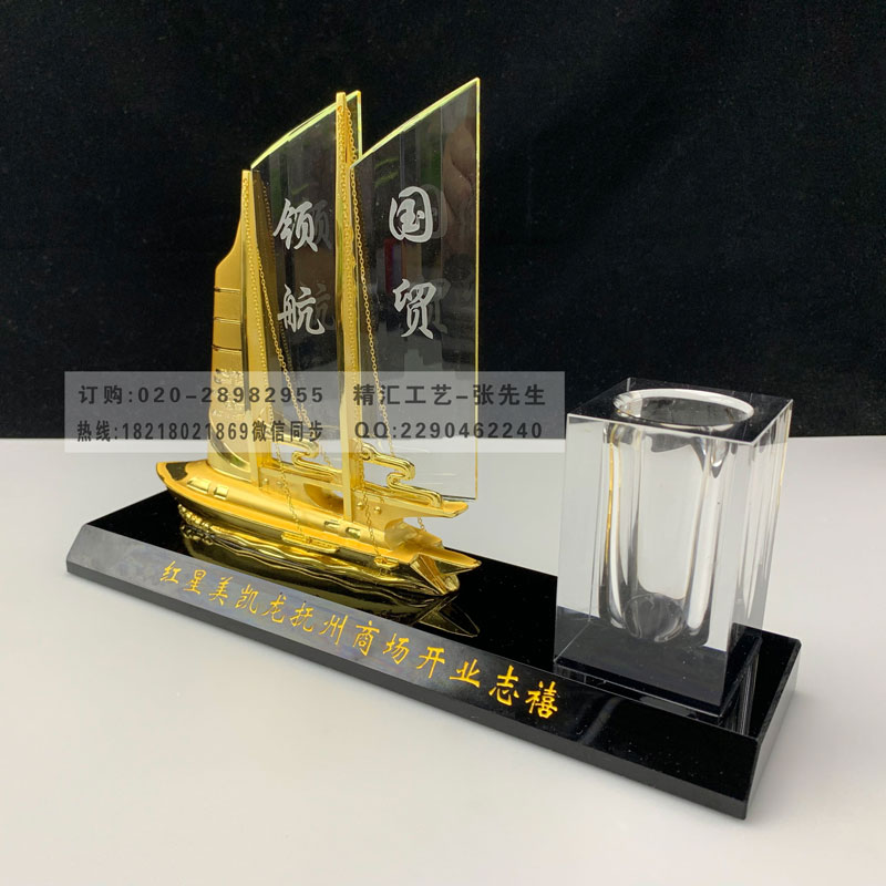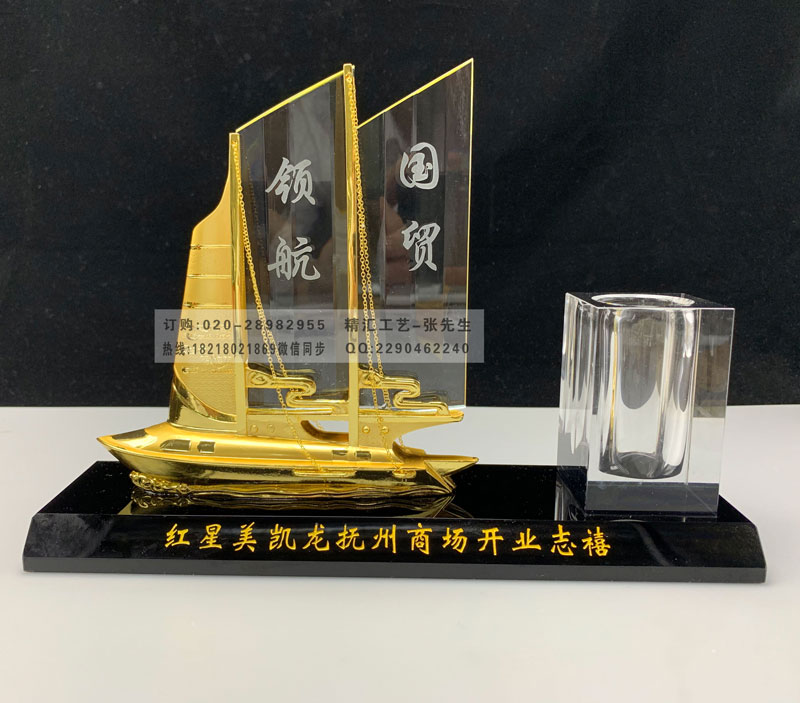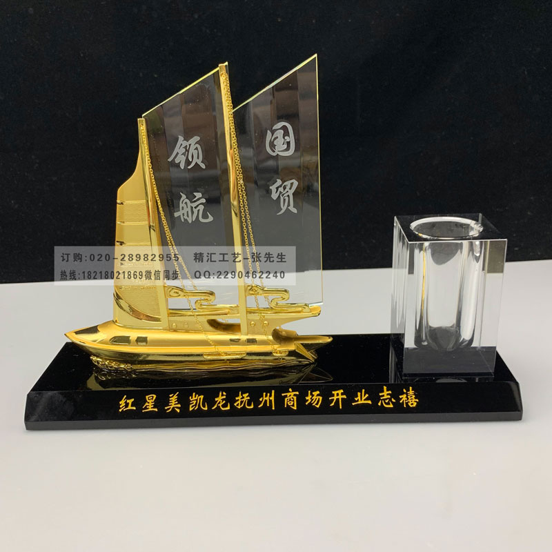 金属帆船模型水晶礼品 商场开业庆典礼品 一帆风顺摆件