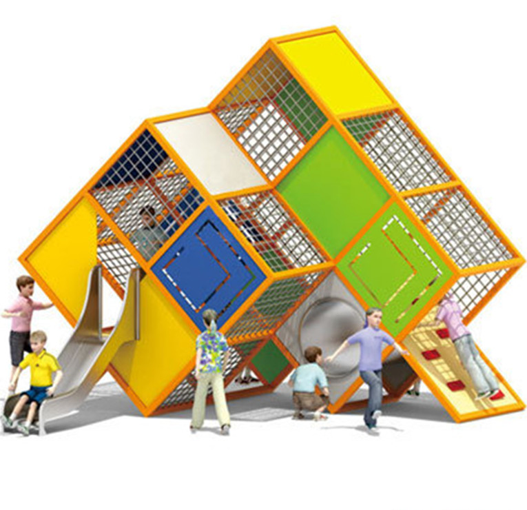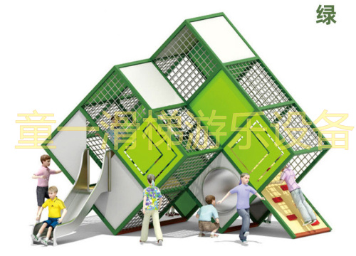 组合滑梯里分别为门、扶梯、攀爬、走道、滑梯、滑筒等给孩子带来了很多乐趣,从滑梯上“嗖”一下滑下来带来速度的刺激和新鲜感。