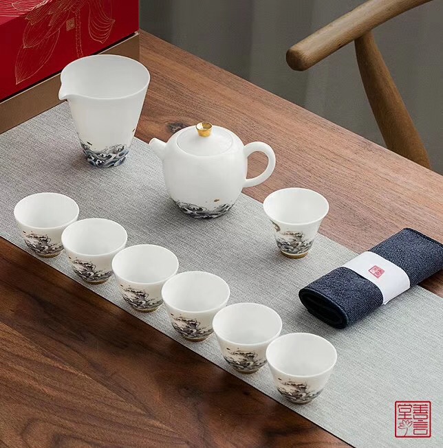 渡景山房羊脂玉瓷茶杯定做骨瓷马克杯骨瓷咖啡杯