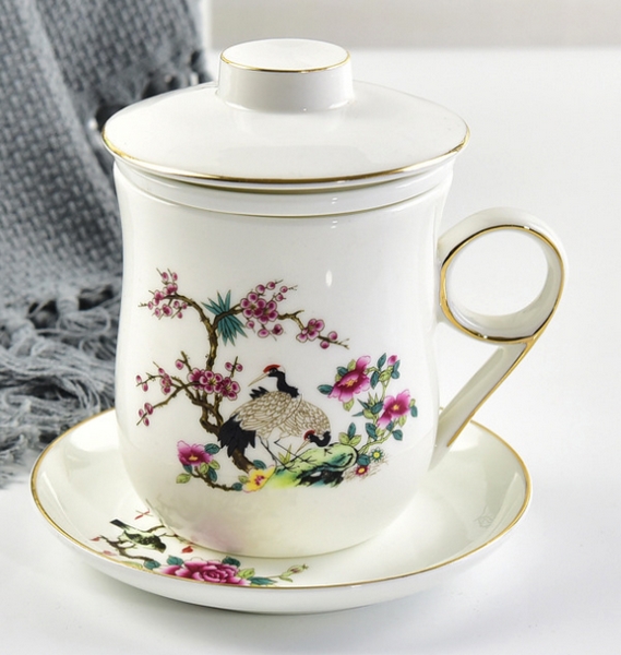 渡景山房陶瓷礼品杯定做高档盖杯陶瓷茶杯马克杯定做