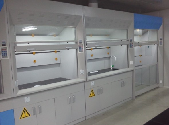 G.汽流板说明: 采用进口6mm灰色,耐酸碱有机溶剂之实验室专用抗蚀材质。其固定于上柜的背板上,采用优质PP材质特殊固定件,以求美观。并便于拆卸清洗。
