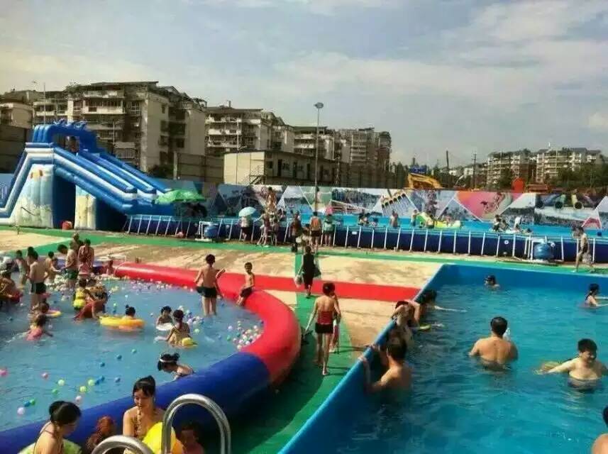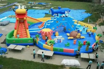 水上冲关乐园是以可移动支架水池为构架,根据冲关关卡的设置,充分利用充气游乐产品形象描叙精确、功能易于实现等特点制作而成的具有趣味性、运动性、娱乐性、主题表现性等优势的闯关乐园。水上冲关乐园多以青少年为主要参与对象,选手需运用钻、爬、骑、沿、穿、滑、跳等动作顺利通过每个关卡。