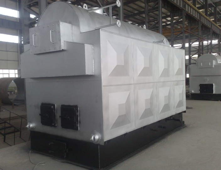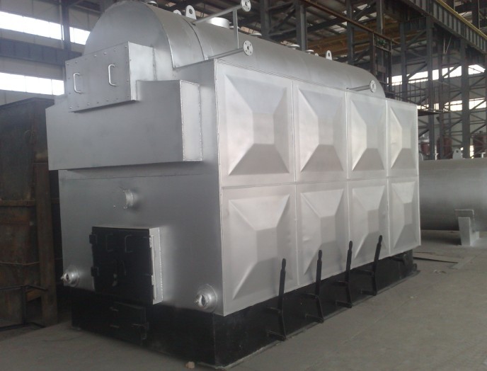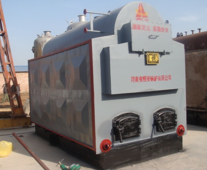新型DZH蒸汽锅炉为单锅筒纵置式水火管锅壳锅炉。燃烧设备为活动炉排。炉膛左右两侧水冷壁为辐射受热面,两翼烟道及锅筒内螺纹烟管为对流受热面。前后炉墙和两侧水冷壁外面采用耐火砖砌筑而成。该锅炉采用拱型管板、螺纹烟管等技术,解决了锅壳式锅炉的管板裂纹,锅筒下部鼓包、热效率低、煤质适应性差等问题。燃烧过程:燃料进入炉膛在炉排上燃烧,生产的烟气沿锅筒底部经有中间隔墙上的出烟口进入两翼对流管束,通过前烟箱进入螺纹烟管,经过除尘器,由引风机抽引通过烟囱排入大气。