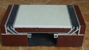 为适应建筑震动多发部位的特殊设计需要,我公司开发设计了一系列抗震变形缝装置。当震动发生时,带有抗震弹簧的滑杆在受力后发生变形,可使变形缝装置中心板沿着边框上升,以保护接缝周边建筑结构不受毁坏;当应力消除后会自动恢复到原有的平整状态。