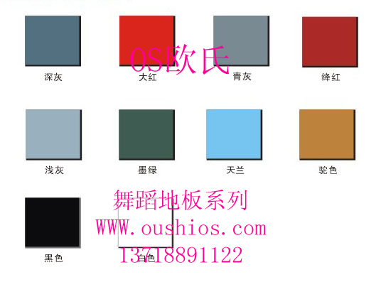 4) 色彩搭配比较:实木运动地板色彩单一,而OS舞蹈专用地胶色彩多样,适合容易搭配,不受地板和场地