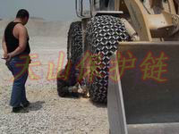 我公司研发生产的轮胎保护链解决了装载机,采矿机,重型汽车等大型采矿设备轮胎寿命短,效率低的问题,特别是在矿区,采石场大负荷作业的设备轮胎寿命更短的问题。我公司生产的轮胎保护链,可以显著的提提高采矿设备轮胎的工作效率,延长轮胎的使用寿命,大大的降低更换轮胎的高额费用,给广大用户带来直接的经济效益,受到了广大用户的欢迎。