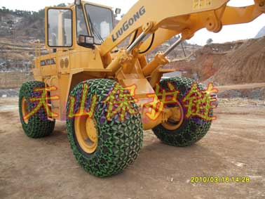 天津市金天山金属制品有限公司生产轮胎保护链,ZL30轮胎保护链,ZL50轮胎保护链,轮胎保护链是安装在轮式装载机、重型载重汽车等轮式工程机械设备上,用于提高轮胎的使用寿命,减少轮胎维修工作,降低工程施工费用,加快工程施工进度,目前轮胎保护链广泛用于,采石场、采矿场、隧道施工、筑路、筑坝施工的作业,适应各种恶劣地面。 我公司生产的产品是通过引进国外先进生产工艺技术,部件选用优质合金钢,经精密铸造、全自动闪光焊接等多道工序制作而成的。产品的各项性能指标,全部达到国内外同类产品的先进水平,现已被国家重点工程指定为推广使用产品。 产品的突出特性表现在恶劣的渣石路面工作时,耐磨性极好,使用寿命可达几千小时,由于整体结构设计合理,各部件之间受力均匀。作业时可靠性高,链环不易断裂,安装、更换、拆卸方便省时、省力,并且备有快速修复件。
