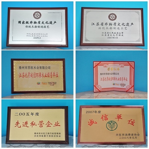 2007年3月,“竹泓木船制作工艺”入选江苏省人民政府非物质文化遗产名录,2008年6月升格为国家级非物质文化遗产。苏航木业前身古港船厂建于1984年,为打造“国”字号文化品牌,促进木船产业发展苏航木业有限公司精益求精始终让木船制作技艺原汁原味,一脉相承传沿至今让这块“国”字号金子招牌大放异彩……