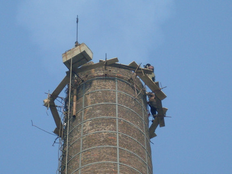 (二)高空维修工程:烟囱改造,烟囱清灰,烟囱检查,烟囱探伤,烟囱裂缝修补,烟囱加箍加固,烟囱碳纤维布加固,烟囱拆除加高,烟囱校正,烟囱更换内衬,烟囱顶口修补,检修或更换避雷设施,烟囱粉刷,轮窑维修、隧道窑维修、烟囱抽烟力不够等。