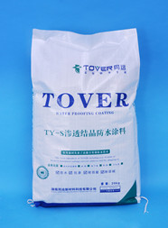 同远牌渗透结晶防水材料是以特种水泥、石英砂等为基料,渗入多种活性化学物质制成的粉状刚性防水材料。与水作用后,材料中含有的活性化学物质通过载体水向混凝土内部渗透,在混凝土中形成不溶于水的结晶体,堵塞毛细孔道,从而使混凝土致密、防水。
