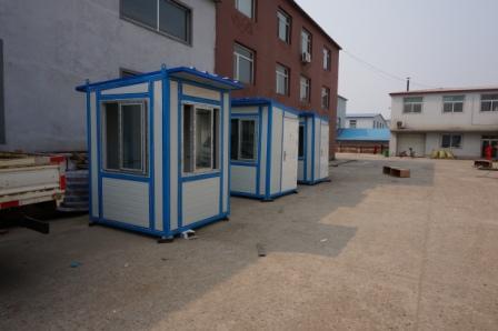 1、整体骨架采用方管焊接,墙体采用容重为夹心彩板,整体由四片拼装而成,整体现场组装,以便多次重复使用。