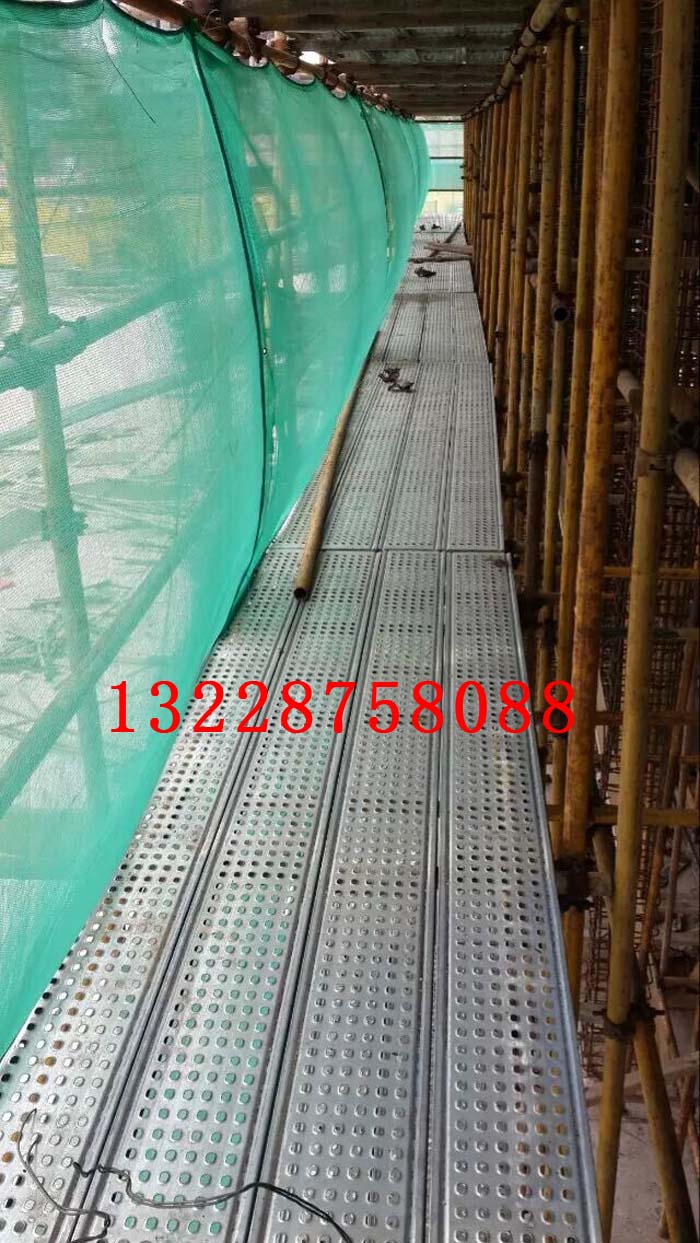 万聪机械设备制造有限公司是一家专门生产各种规格和长度的镀锌脚手板,公司现有大量3米新型冲孔钢脚手板,3米钢脚手板是外墙脚手架上使用最为广泛的一种常规规格,本公司生产的3米脚手板,钢脚手板侧面的工字型设计增加了牢度和强度,钢脚手板表面是带翻边的凸孔,此设计具有防滑,防止积沙子的作用,可以减轻自重,同时又可以防变形。钢脚手板表面在靠近工字钢的边缘压制了两条加强筋,使得钢脚手板的强度增加,更使其外型美观大方、坚固耐用。