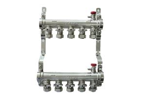 分水器连接于官网系统的供水管,它的主要作用是将来自于管网系统的分集水器热水通过埋在地板下的地暖管分配到室内需地板采暖的各房间,热水在地暖管中流动时,将热量传递到地板,再通过地板向室内辐射传热。地暖管的另一端与分集水器的集水器相连,在室内散热后温度降低的回水通过集水器回到管网系统,完成一个循环。