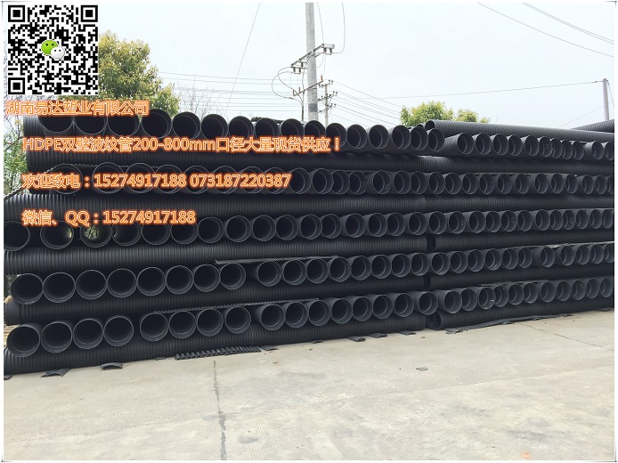 2015年湖南易达塑业加大投入1亿8千万扩大生产厂区,提升生产能力,大量备货市政工程管道,库存充足,省内24小时内可到货,并可提供权威机构出具的检测报告,合格证,企业资质。