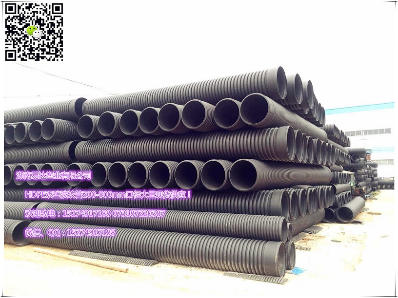 2015年湖南易达塑业加大投入1亿8千万扩大生产厂区,提升生产能力,大量备货市政工程管道,库存充足,省内24小时内可到货,并可提供权威机构出具的检测报告,合格证,企业资质。