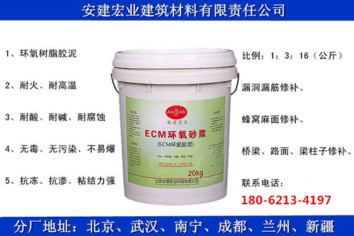 是以环氧树脂、固化剂及其特种填料等为基料而制成的高强度、抗冲蚀、耐磨损材料。具有性能优良,施工简便、快捷,无毒、无污染等特点。环氧砂浆的生产执行企业标准
