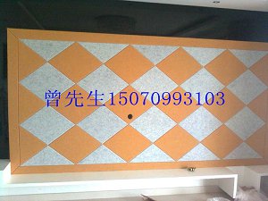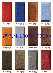 聚酯纤维吸音板有40多种颜色,可以拼成各种图案。表面形状有平面、方块(马赛克状)、宽条、细条。板材可弯成曲面形状。可使室内体形设计更加灵活多变,富有效果。甚至可以将艺术画通过电脑复印在聚酯纤维吸音板上。