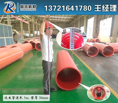 为加强隧道施工安全管理,确保隧道掘进过程中施工人员的人身安全,国润新材新型隧道逃生管道材料重量轻拆装和搬运方便;连接简单、牢固、紧密可靠,施工时管口可加临时封盖,并易于打开和封闭。管道韧性好、抗冲击强度高,受到强外力冲击时瞬间变形,吸收大量冲击能量,迅速恢复原形。