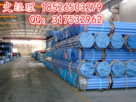 内外环氧粉末防腐钢管产品优点:具备较高的机械强度,适合比较苛刻的使用环境;内外涂层可阻止金属氧化,具有较好的耐化学腐蚀性能;涂层附着力强,结合强度高,耐冲击性好;粗糙系数和磨阻系数低,抗异物附着性优良;抗老化,使用寿命长,尤其适合埋地输水。由涂塑复合钢管代号、内涂层材料代号和公称尺寸组成。给水衬塑复合钢管是在钢管内壁,按输送介质的要求内衬塑乙 烯(PE)、耐热聚乙 烯(PE-RT)、交联聚乙 烯(PE-X)、聚丙 i烯(PP-R)、硬聚氯乙 烯(PVC-U)、氯化聚氯乙 烯(PVC-C)等热塑性塑料管制成。由于工艺的改进,有些产品增加了外覆塑层。产品按输送水的温度分为冷水用衬塑钢管和热水用衬塑钢管。产品标记由衬塑钢管代号、衬塑材料代号、公称通径组成。