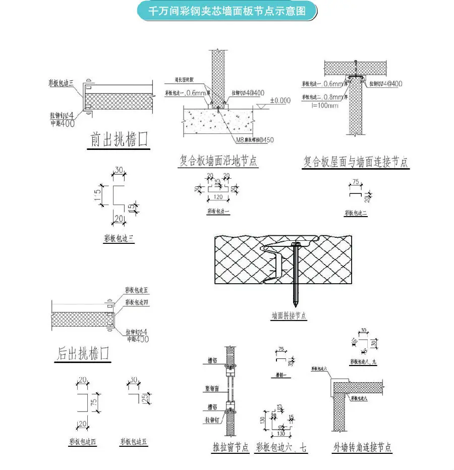 千万间新型防火岩棉夹芯板是选用两层高品质的彩色涂层钢板或其他精密压型的金属板材做面板,辊压成型后,将分条后的岩棉90度翻转(使其纤维垂直于上下两层钢板),通过高强度的、高粘结力的、高防火的粘结剂,将优质岩棉与金属面板强力粘接,复合而成美观、平整、刚韧的建筑板材。成型后的板材具有优良的防火、保温、环保等特点,为工业建筑围护系统提供了一个绝佳的选择。