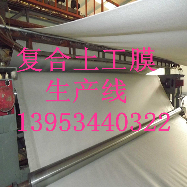 复合土工膜生产工艺:一种是烘箱热压复合型工艺,在薄膜的一侧或两侧经过烘箱远红外加热,把土工布和土工膜经导辊压到一起形成。另一种是淋膜流延复合工艺,在两层土工布的中间将流延薄膜均匀涂层而复合在一起。