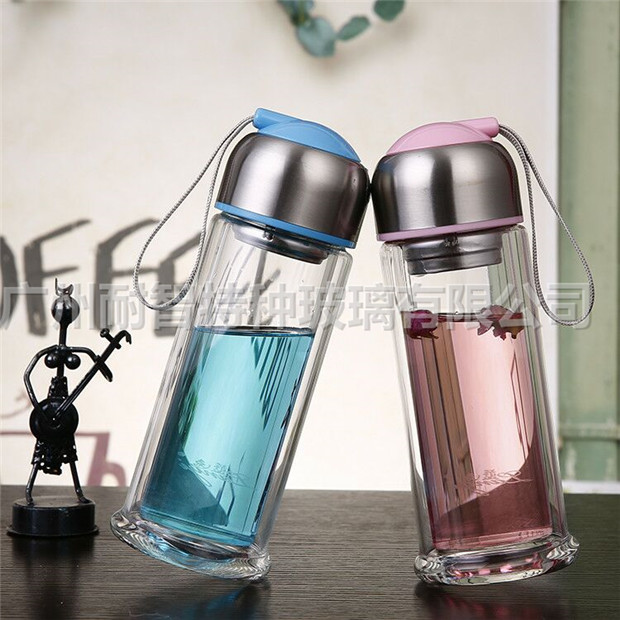新款高硼硅耐热玻璃双层盖子COCO杯可爱便携创意杯盖
