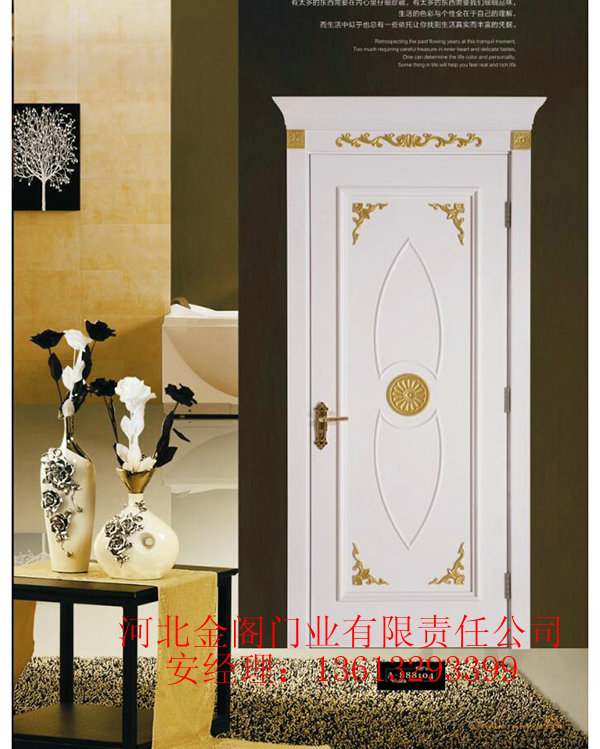 河北金阁门业有限责任公司是一家专业生产中高档门类产品的企业,集开发、生产、设计销售于一体。公司主导产品为室内免漆门、拼装门、实木复合烤漆门、原木门、模压门、T型门等,此外还有卷帘门、电动车库门。生态木烤漆套装门