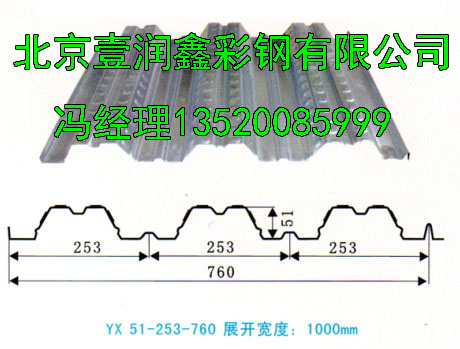 北京壹润鑫彩钢有限公司镀锌楼承板主要特点:1:适应主体钢结构快速施工的要求,能够在短时间内提供坚定的作业平台,并可采用多个楼层铺设压型钢板,分层浇筑混凝土板的流水施工。 2:在使用阶段楼承板作为混凝土楼板的受拉钢筋,也提高了楼板的刚度,节省了钢筋和混凝土的用量。3:压型板表面压纹使楼承板与混凝土之间产生最大的结合力,使二者形成整体,配以加劲肋,使楼承板系统具有高强承载力。 4:在悬臂条件下,楼承板仅作为永久性模板。悬挑的长度可根据楼承板的截面特性来定。为了防止悬挑板的开裂,需在支座处依结构工程师的设计配上负筋。 5:本公司楼承板已通过国家固定灭火系统及耐火构件质量检测中心的耐火极限检测,作为组合楼承板无需防火喷涂,因此大大降低了工程造价。楼承板(钢承板,建筑压型钢板)是采用镀锌钢板经辊压冷弯成型,其截面成V型、U型、梯形或类似这几种形状的波形,主要用作永久性模板,也可被选为其他用途。楼承板规格:YX75-200-600(7520型,镀锌压型钢板),YX75-293-880(带压痕压型钢板),YX76-344-688(常用钢承板),YX75-230-690型楼承板,YX76-305-915型楼承板,YX65-185-555(全闭口型压型钢板),YX51-200-600(燕尾式楼承板),YX51-226-678楼承板,YX51-253-760钢承板,YX51-250-750楼承板,YX51-240-720钢承板,YX51-305-914楼承板,YX50-180-720楼承板,YX35-125-750压型钢板, YX51-330-992楼承板等。产品外形美观、色泽艳丽,承重、保温、防火、防水性能强,欢迎广大客户来电洽谈!