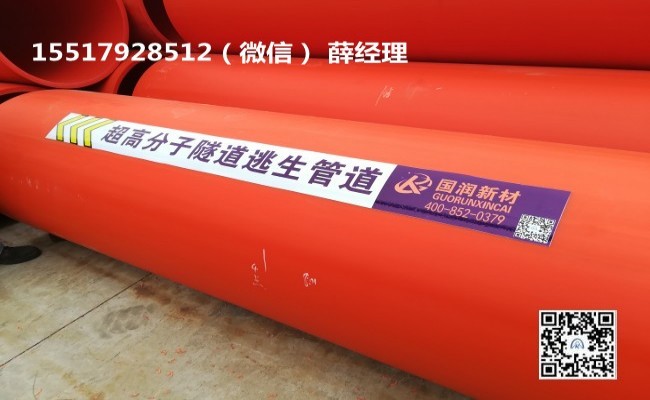 新型隧道逃生管道是以优质超高分子聚乙烯树脂为主要原料,添加必要的抗氧剂紫外线吸收剂等助剂,经挤塑机挤出加工而成的新型塑料管材产品,执行标准:GB/T13663-2000 。洛阳国润新材料科技股份有限公司专注生产新型隧道逃生管道
