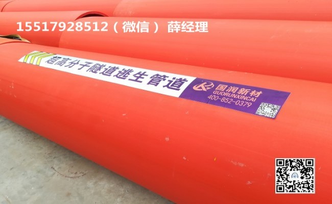 逃生管的口径要大,根据人体工程学原理,管道口径一般不能小于600mm于600-800mm之间为合适,隧道逃生管道的抗冲击性能,柔韧性能要好,要抗撞击,超高分子量聚乙烯管作为国家21世纪重点发展的高新科技项目,在隧道逃生领域得到了广泛应用。超高分子量聚乙烯管的柔韧性非常好,抗冲击性能非常强,即使受到地壳的强烈变动,管道也不会断裂,只会发生轻微的变形。用作逃生管,超高分子量聚乙烯管抗冲击,重量轻,运输安全方便,连接方式简单,综合性价比高。